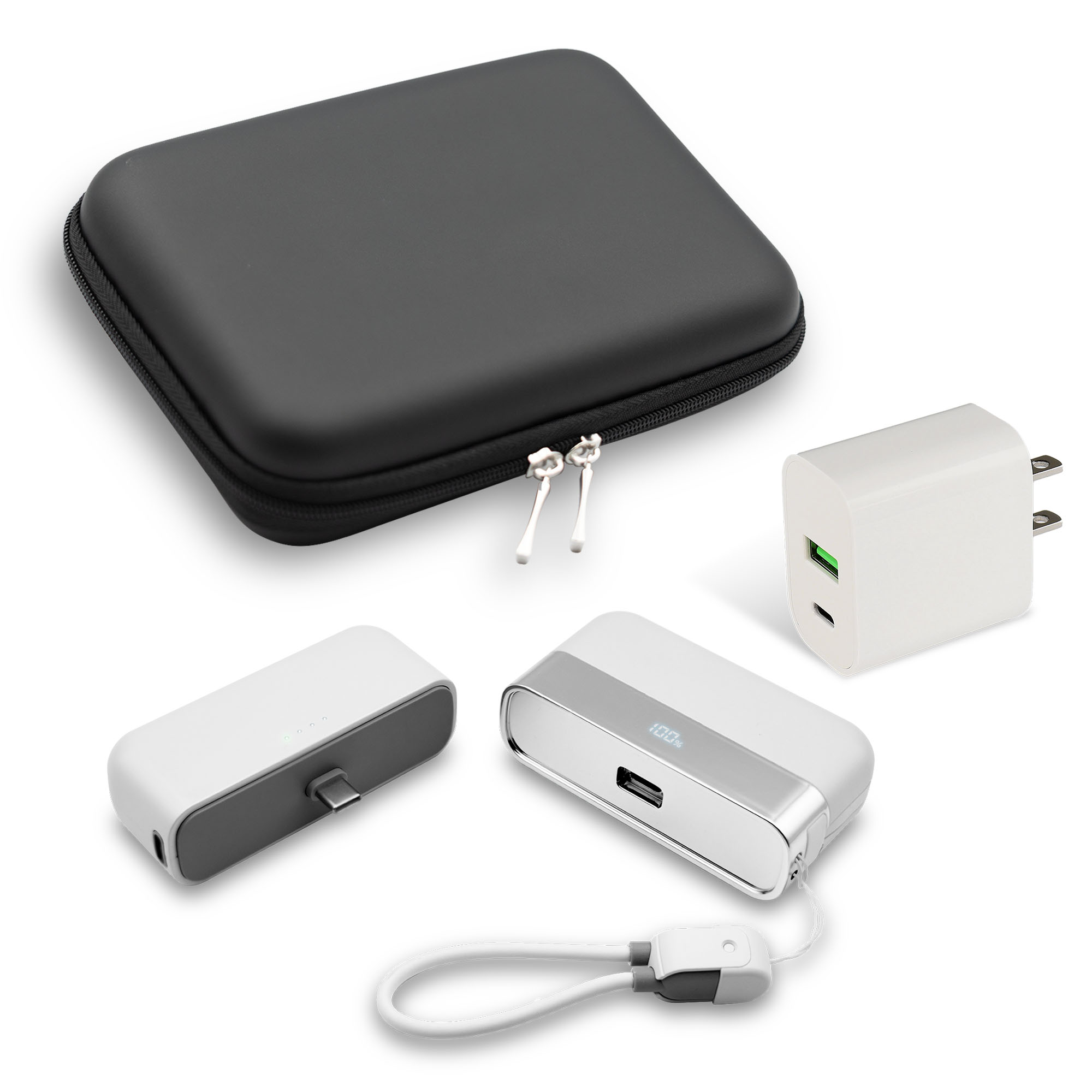 | Imprint Sizes | Power Bank: H 5/8" x W 2" | Adapter: H 5/8" x W 1 1/4" | Tech Organizer: H 2" x W 2 1/2" |