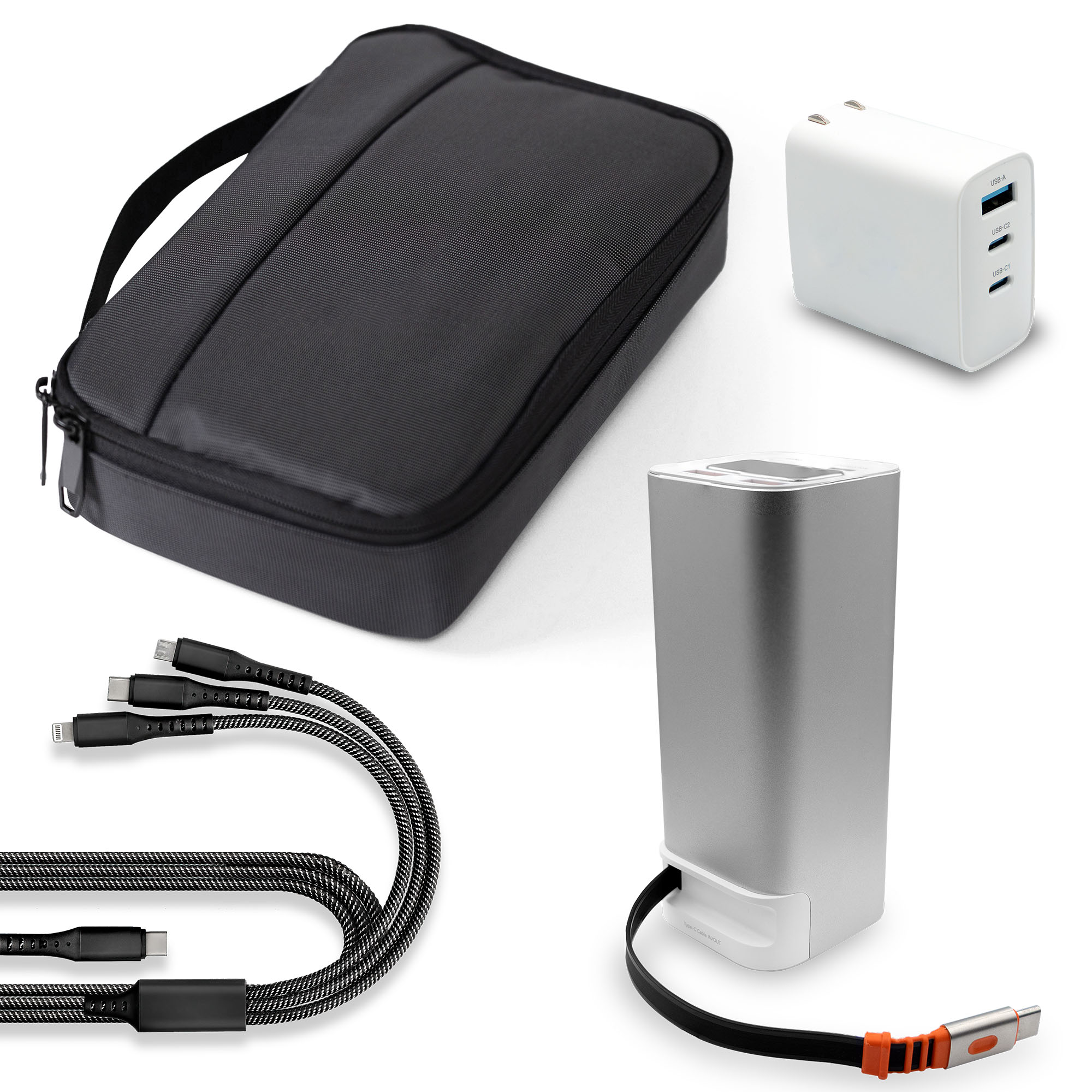 | Imprint Sizes | Power Bank: H 2 1/2" x W 7/8" (body), H 1 1/4" x W 1 1/4" (standing base) | Wall Adapter: H 1 1/4" x W 1 1/2" | Charging Cable: H 1/4" x W 7/8" | Tech Organizer: H 2" x W 5" |