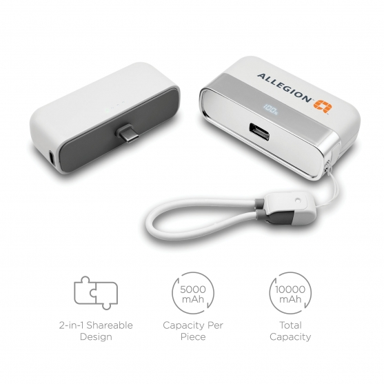 Gemini Two Piece Shareable 10,000 mAh Power Bank with Charging Cable Loop